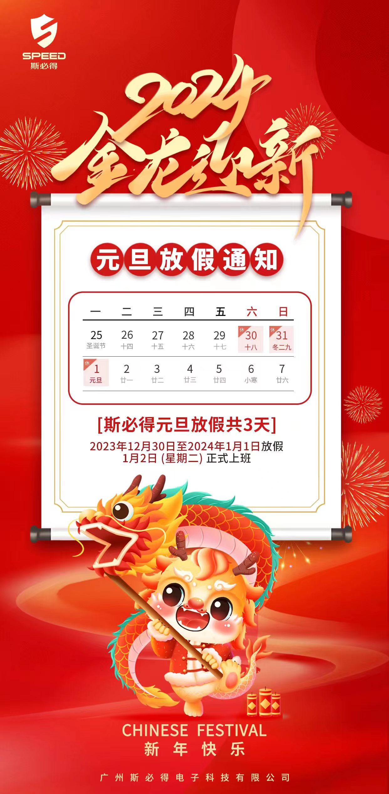 在2023年12月31日23時59分59秒,伴隨這鐘聲響徹夜空的時候,我們迎來了一個充滿期待的2024年,值此佳節(jié)之際,謹代廣州斯必得電子科技有限公司,向所有的新老客戶、合作商、全體員工表示衷心的感謝,祝愿大家在2024年里,工作順利、心想事成、生活如畫。