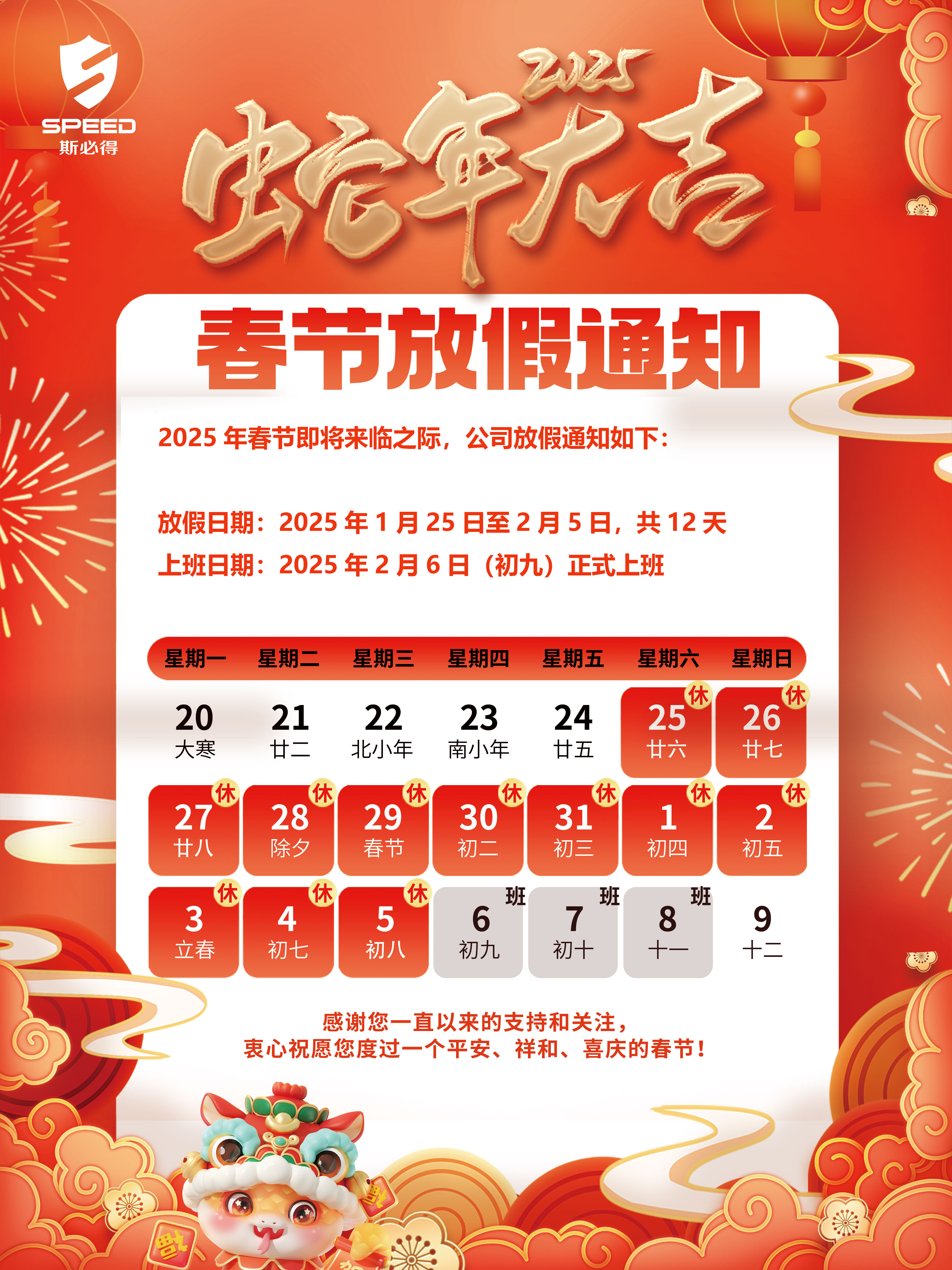 廣州斯必得電子科技2025年春節(jié)放假通知