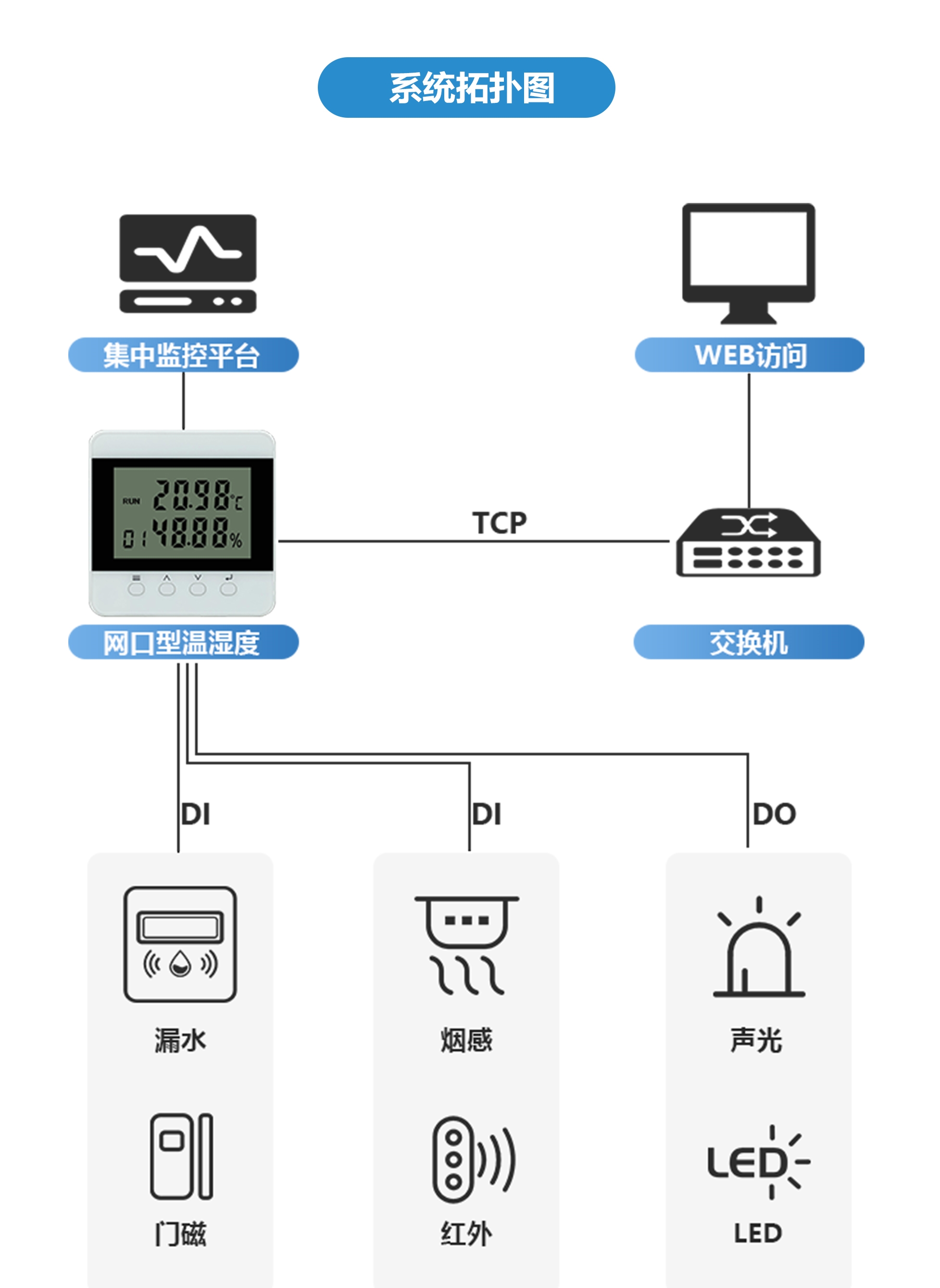 SPD-TH-RJ45網(wǎng)絡(luò)型溫濕度控制器可以用于實(shí)現(xiàn)多點(diǎn)監(jiān)測(cè)、混合組網(wǎng)、和上位機(jī)系統(tǒng)通訊,該產(chǎn)品廣泛應(yīng)用于工業(yè)現(xiàn)場(chǎng)、養(yǎng)殖場(chǎng)、種植場(chǎng)、辦公室、超市、檔案室、生產(chǎn)車間、倉庫、機(jī)房、自動(dòng)控制、醫(yī)療等要求溫濕度測(cè)量的場(chǎng)合,其高穩(wěn)定性、適用性以及高性價(jià)比是產(chǎn)品首選,且可匹配煙感、水浸、供配電等傳感器,接入動(dòng)力環(huán)控監(jiān)控系統(tǒng)中,實(shí)現(xiàn)更智能化的管理。
