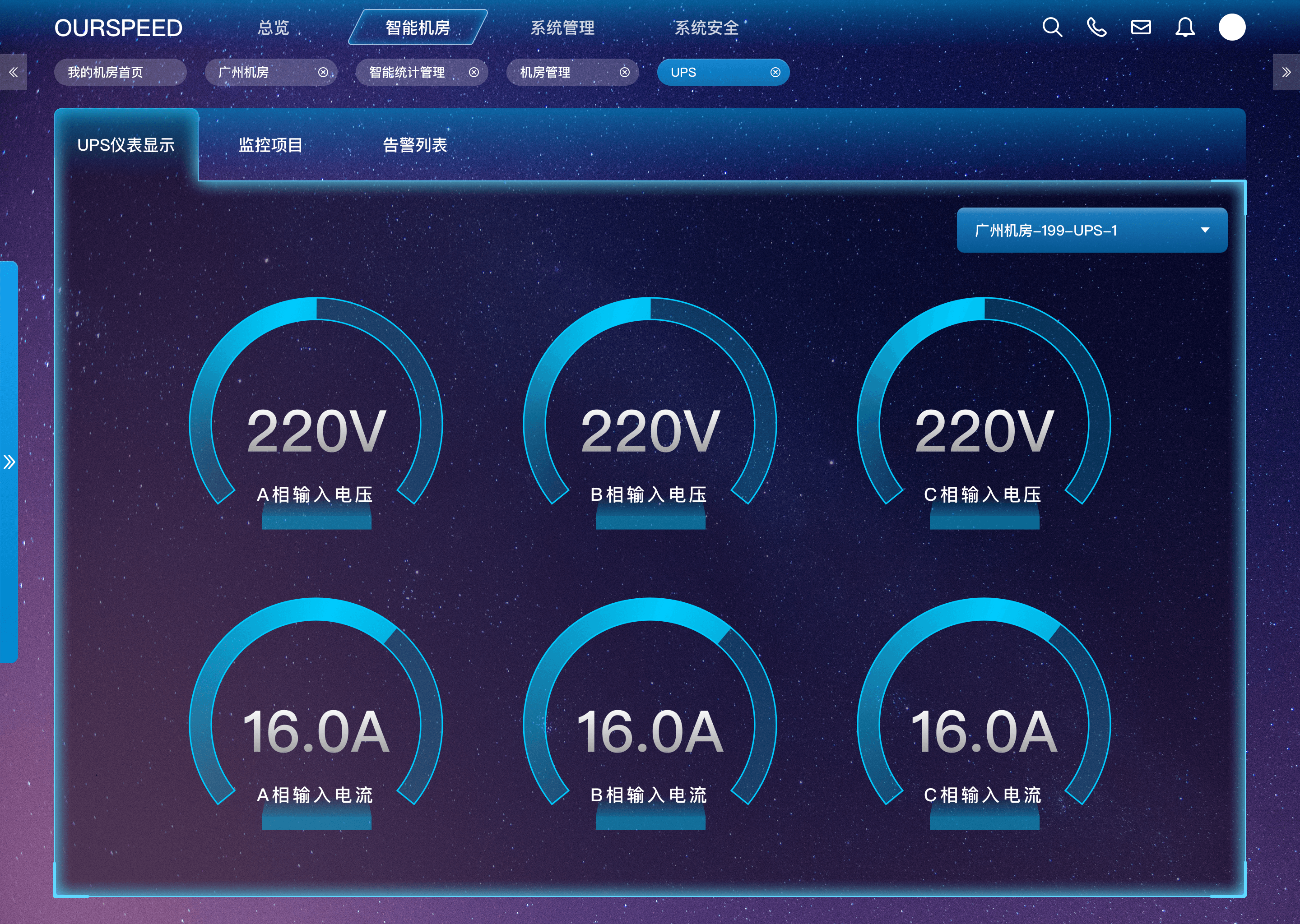 幫助15000余項目順利交付!監(jiān)測UPS的運行狀態(tài),包括:輸入電壓、輸入頻率、輸出電壓、輸出電流、輸出功率、旁路狀態(tài)、逆變狀態(tài)、電池電壓、充放電流等。