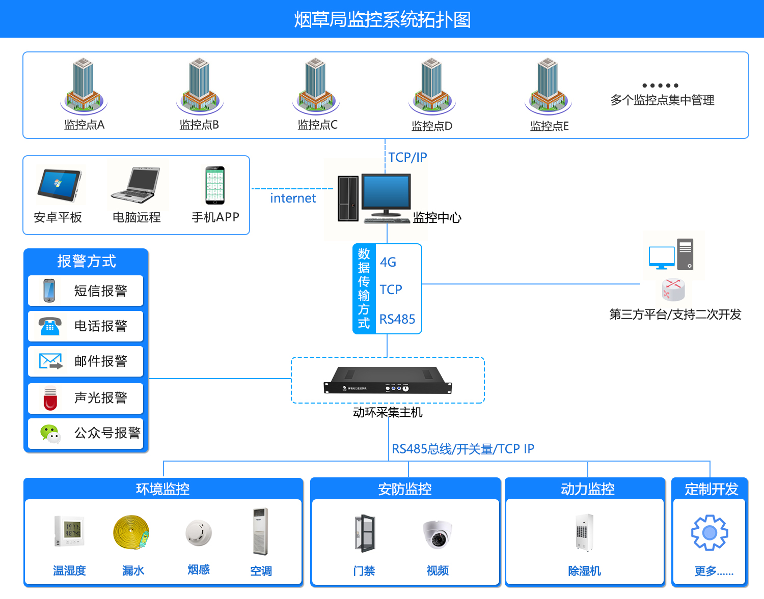 設(shè)計倉庫環(huán)境集中監(jiān)控系統(tǒng)對倉庫的溫濕度、煙霧、空調(diào)、除濕機(jī)、漏水組件進(jìn)行集中監(jiān)控,并在設(shè)備運(yùn)行超出閾值設(shè)定時或設(shè)備故障時能夠發(fā)出電話語音、短信以及聲光等告警方式通知庫房管理人員,實(shí)現(xiàn)對庫房設(shè)備進(jìn)行全面管理,實(shí)時監(jiān)視各種設(shè)備的狀態(tài)及參數(shù),對發(fā)生的報警事件進(jìn)行存儲記錄。
