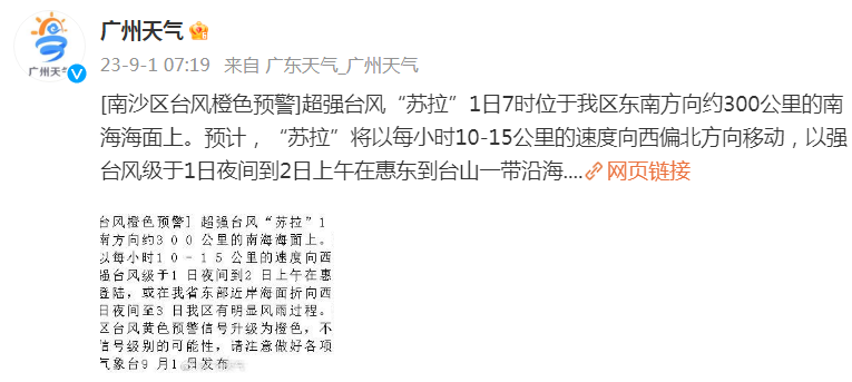 廣州番禺、南沙兩區(qū)臺風(fēng)預(yù)警已升級為橙色↓↓