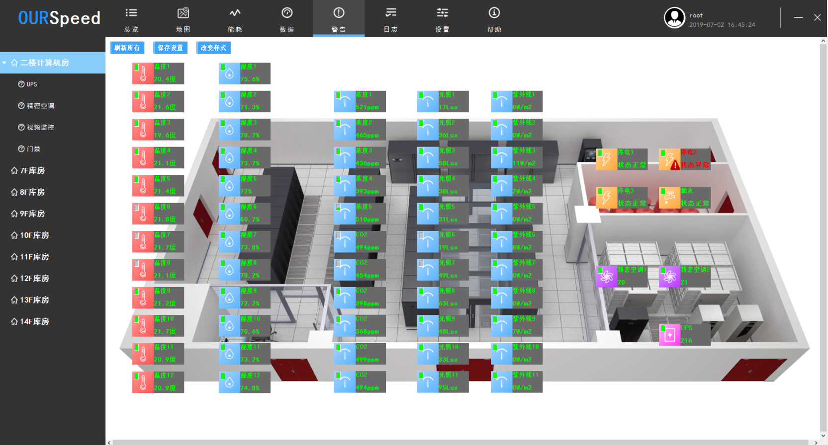 6.具有SMTP郵件報(bào)警功能,支持更安全SSL加密的郵件協(xié)議,能夠提供JSON格式北向接口,提供傳感器的多種界面展示風(fēng)格,比如汽車儀表樣式,數(shù)碼管風(fēng)格樣式等。傳感器數(shù)據(jù)顯示樣式不少于4種,并且能實(shí)時(shí)切換各種顯示樣式,傳感器可隨時(shí)在系統(tǒng)拓?fù)鋱D上拖動(dòng),靈活的將傳感器展示在拓?fù)鋱D上指定位置,支持多種不同權(quán)限級(jí)別用戶登錄操作,支持BS端控制空調(diào),實(shí)現(xiàn)聯(lián)動(dòng),可以直接接入視頻監(jiān)控,實(shí)時(shí)查看,可進(jìn)行大屏展示,也可遠(yuǎn)程切換后臺(tái)處理數(shù)據(jù)異常。