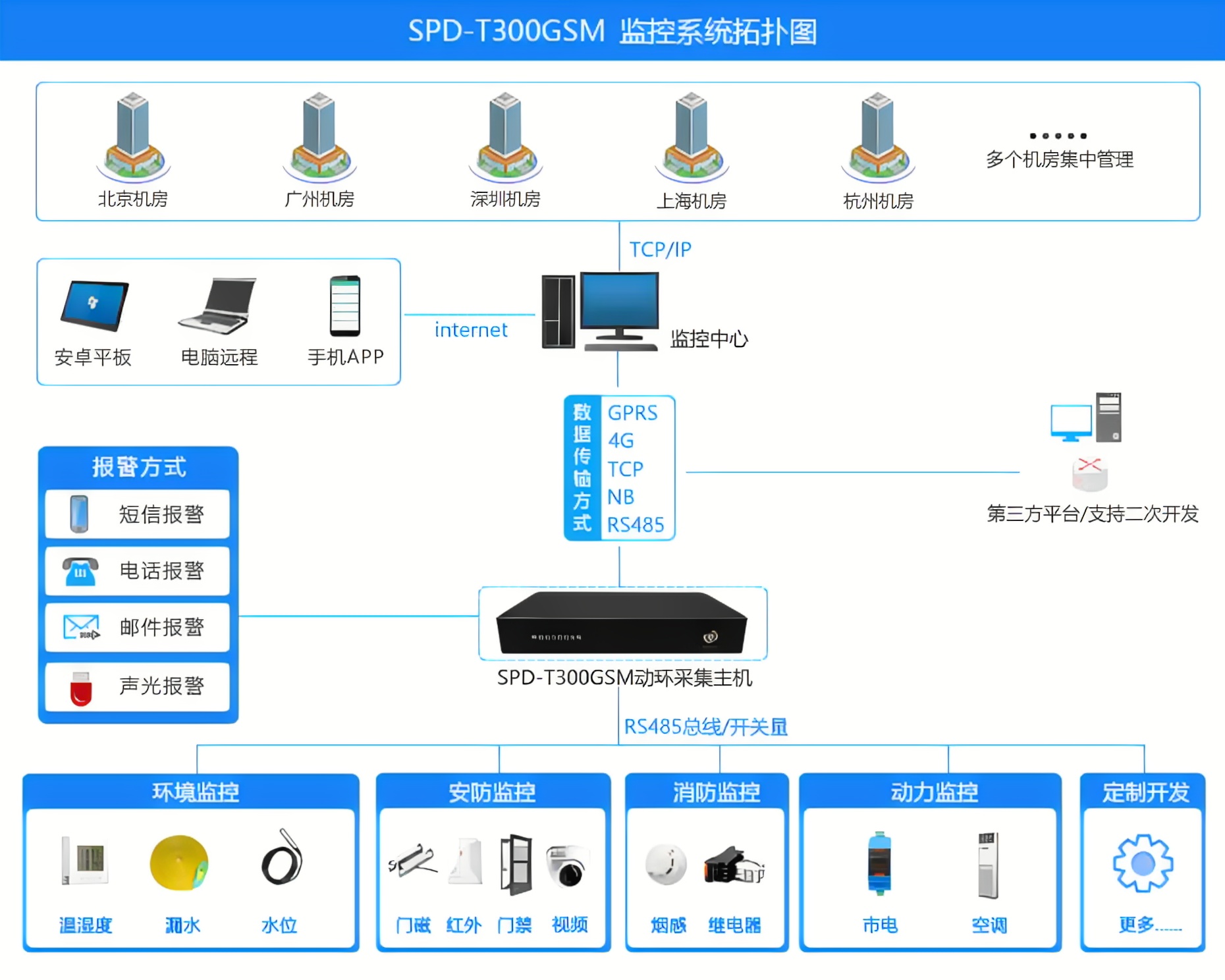動(dòng)力環(huán)境監(jiān)控系統(tǒng)常規(guī)功能首先涵蓋了全面監(jiān)測,如織就一張細(xì)密無間的安全網(wǎng),對(duì)電源UPS、電池組、三相電、市電、空調(diào)、溫濕度、門禁、視頻、水浸、消防等關(guān)鍵要素進(jìn)行24小時(shí)不間斷的監(jiān)控,任何細(xì)微波動(dòng)都難逃其法眼。而其智能告警功能如同敏銳的哨兵,一旦發(fā)現(xiàn)異常狀況,立即通過APP、微信、電話、聲音、短信、郵件等多種方式向管理人員發(fā)出緊急警報(bào),確保問題能夠被迅速發(fā)現(xiàn)并處理,有效避免潛在風(fēng)險(xiǎn)升級(jí)為實(shí)際故障。